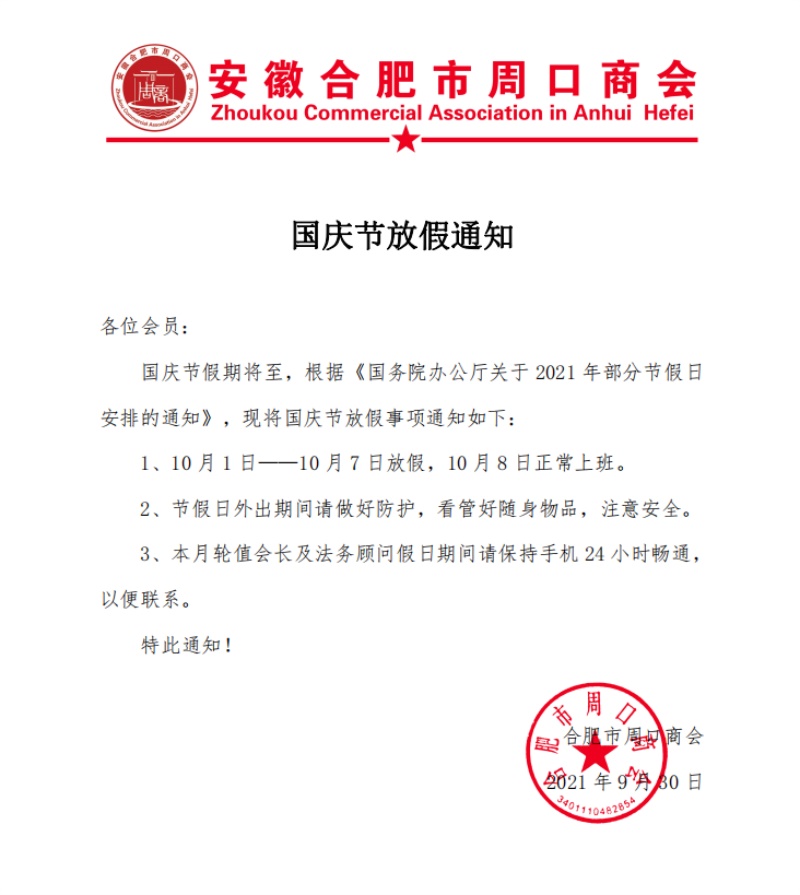 国庆放假通知