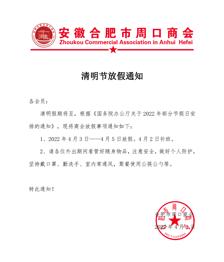 上一条:合肥市周口商会春节期间“非必要不返乡”的倡议