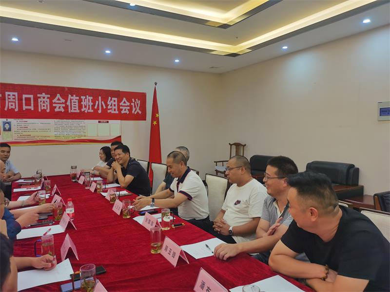会长丁红伟主持会议。第三组值班会长吕琪瑞在会上通报了本组七月、八月轮值期间商会各项活动落实情况,包括走访企业、参加活动等。特别提出三点,一是周口市政协副主席兼工商联主席赵万俊,周口市工商联副主席兼总商会党委书记徐公俊莅临我商会进行调研指导工作,给商会指明发展方向;二是商会考察团赴项城市参加商务会议,项城市市委书记赵丹,市委副书记代市长李飞出席会议,并与商会企业家友好洽谈合作项目;三是河南遭遇暴雨,商会领导班子积极响应号召,组织捐款活动并亲赴周口市扶沟县捐赠救灾物资,充分展现了商会企业一方有难,八方支援,团结一心,共克时艰的伟大民族精神。
