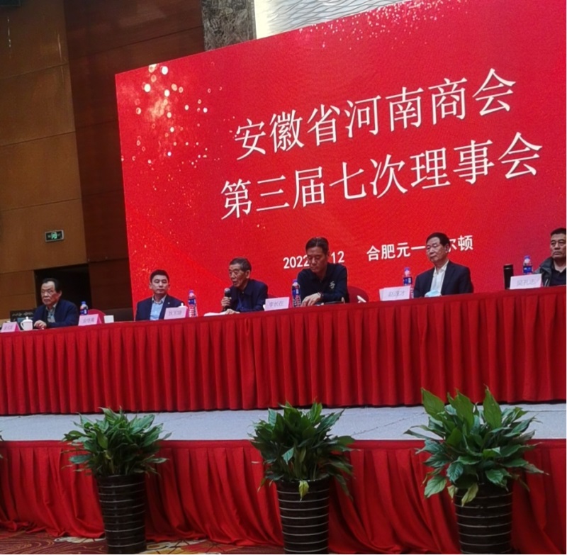 2022年3月12日,安徽省河南商会第三届七次理事会在合肥市元一希尔顿大酒店隆重举行。安徽省军区原副司令狄玉增、一〇五医院原副院长赵连才、安徽省食品药品监督管理局原副局长李长在等领导莅临会议,合肥市周口商会会长丁红伟受邀参加会议。