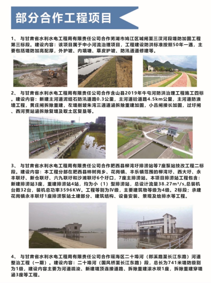 合作单位有中国水利水电第六局、中国水电基础局有限公司、甘肃水利水电工程局有限公司、青岛瑞源工程有限公司、内蒙古辽河工程局有限公司等多家企业。