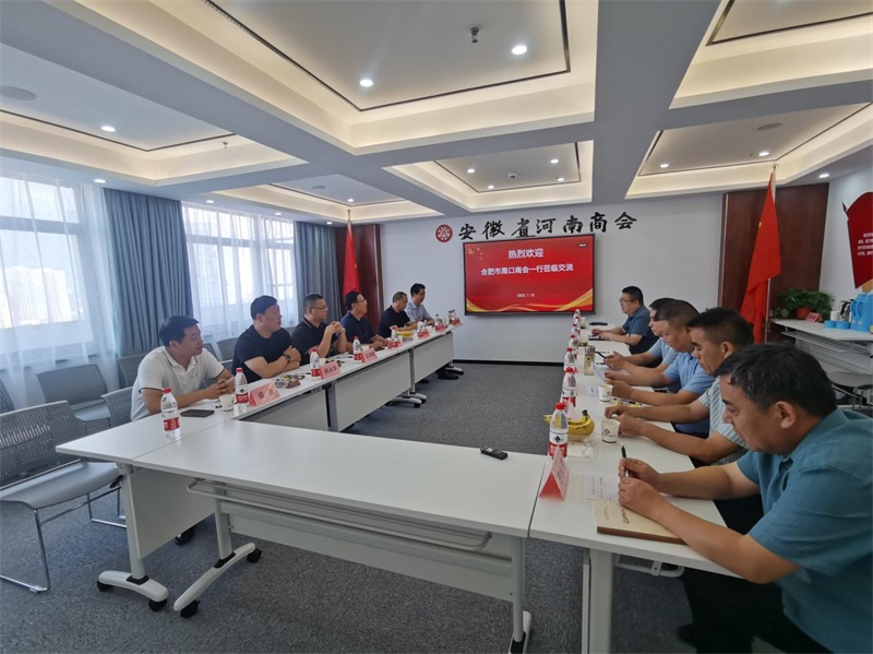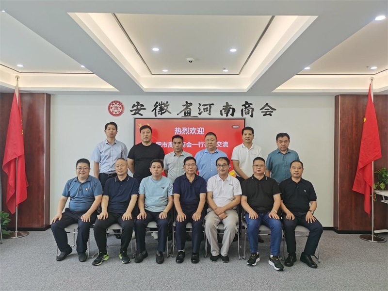 为加强在皖河南兄弟商会之间沟通交流,对接优质资源,共谋协同合作发展,2022年7月15日,我会轮值会长吕琪瑞带队,执行会长师永华、梁言,常务副会长冯玉军、梁咏宽,监事长郑德林,秘书处一行组团前往安徽省河南商会学习考察调研。