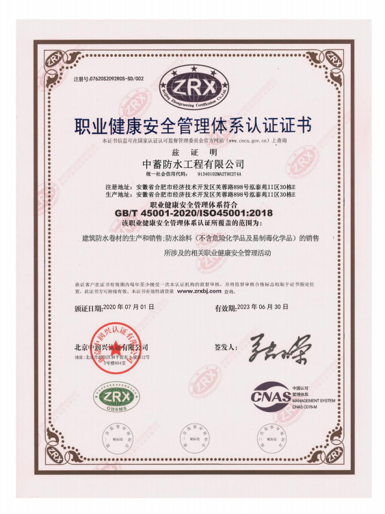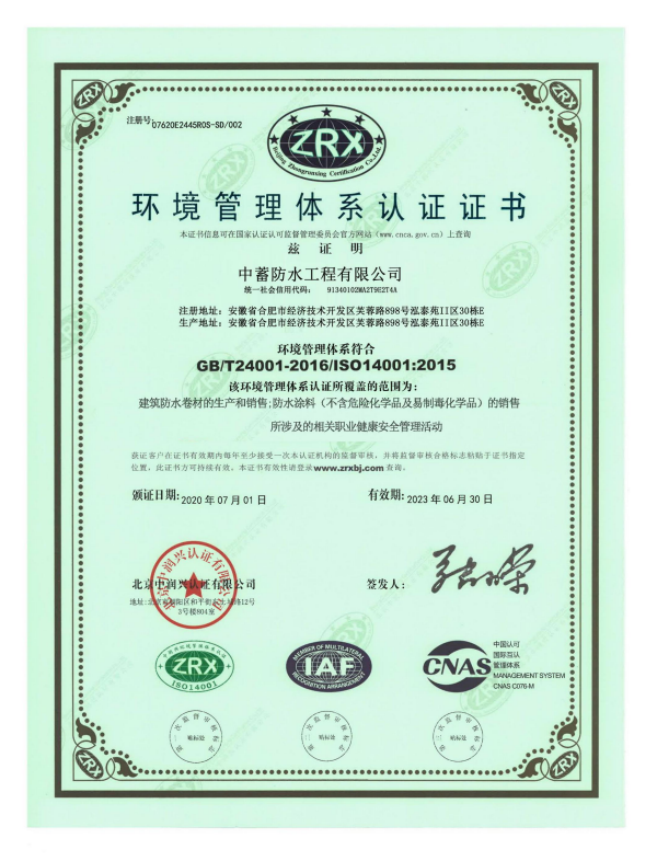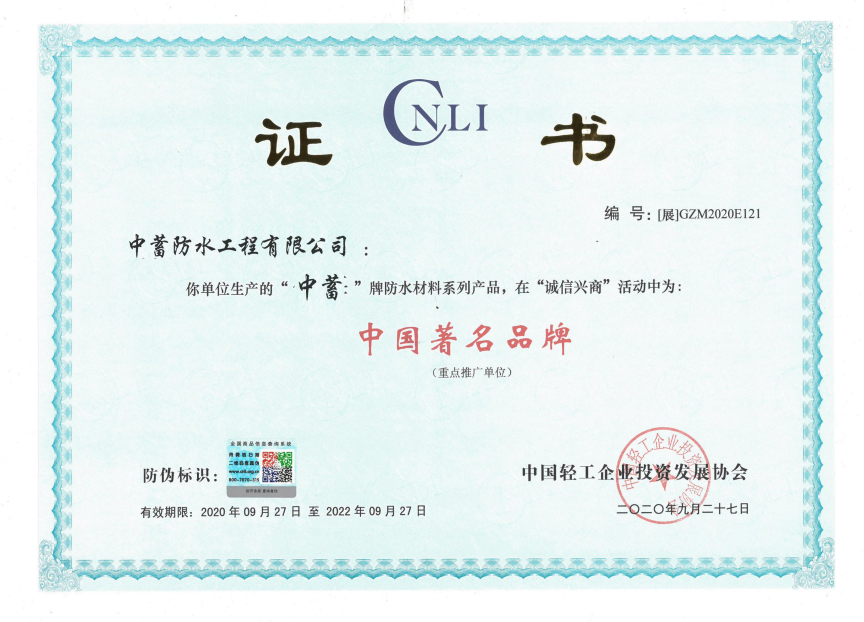 为推动公司长远发展、立足自身品牌,公司相继完成了“中蓄防水”商标注册,在全国“防水之乡”—项城防水产业园,成立河南中蓄新型建材有限公司,成为集防水生产、研发、工程施工、销售服务于一体的综合性服务商。