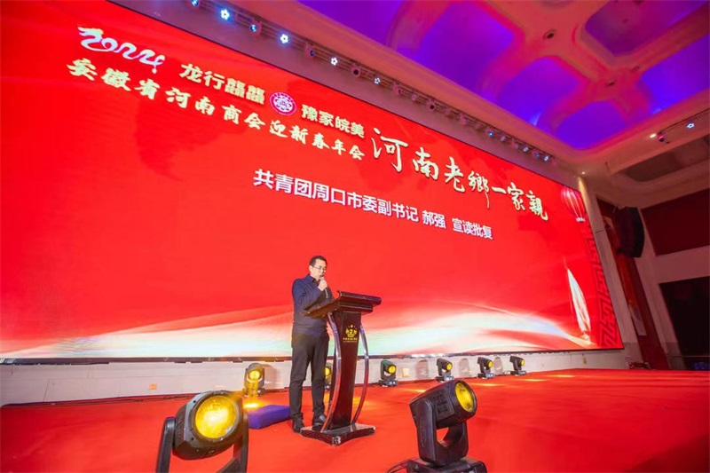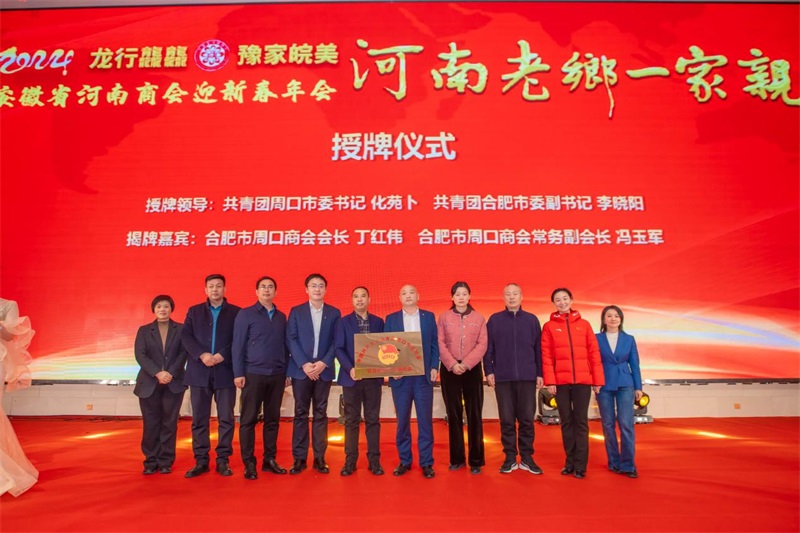 2023年12月21日下午6点,龙行龘龘 豫家皖美“河南老乡一家亲”安徽省河南商会迎新春年会在合肥市白金汉爵大酒店顺利举办。会上一并进行了中国共产主义青年团周口市委员会驻合肥市工作委员会揭牌授牌仪式。